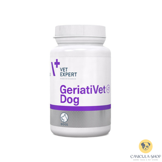 GeriatiVet Dog to preparat wspomagajacy dla psów starszych, wymagających specyficznej suplementacji, zmniejszającej ryzyko wystąpienia problemów zdrowotnych związanych z wiekiem.