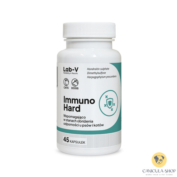 Lab-v Immuno Hard to zaawansowany preparat w formie kapsułek, stworzony we współpracy z lekarzami weterynarii, specjalnie dla psów i kotów, które potrzebują wsparcia w walce z obniżoną odpornością.