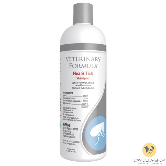VFCC - Szampon przeciw pchłom i kleszczom - Pozwala naturalnie pozbyć się pcheł i kleszczy. Delikatnie oczyszcza i złuszcza skórę i sierść. Zawiera piretrum, pochodzący z kwiatów chryzantem. Pozostawia płaszcz miękki, lśniący, wolny od pcheł i kleszczy.